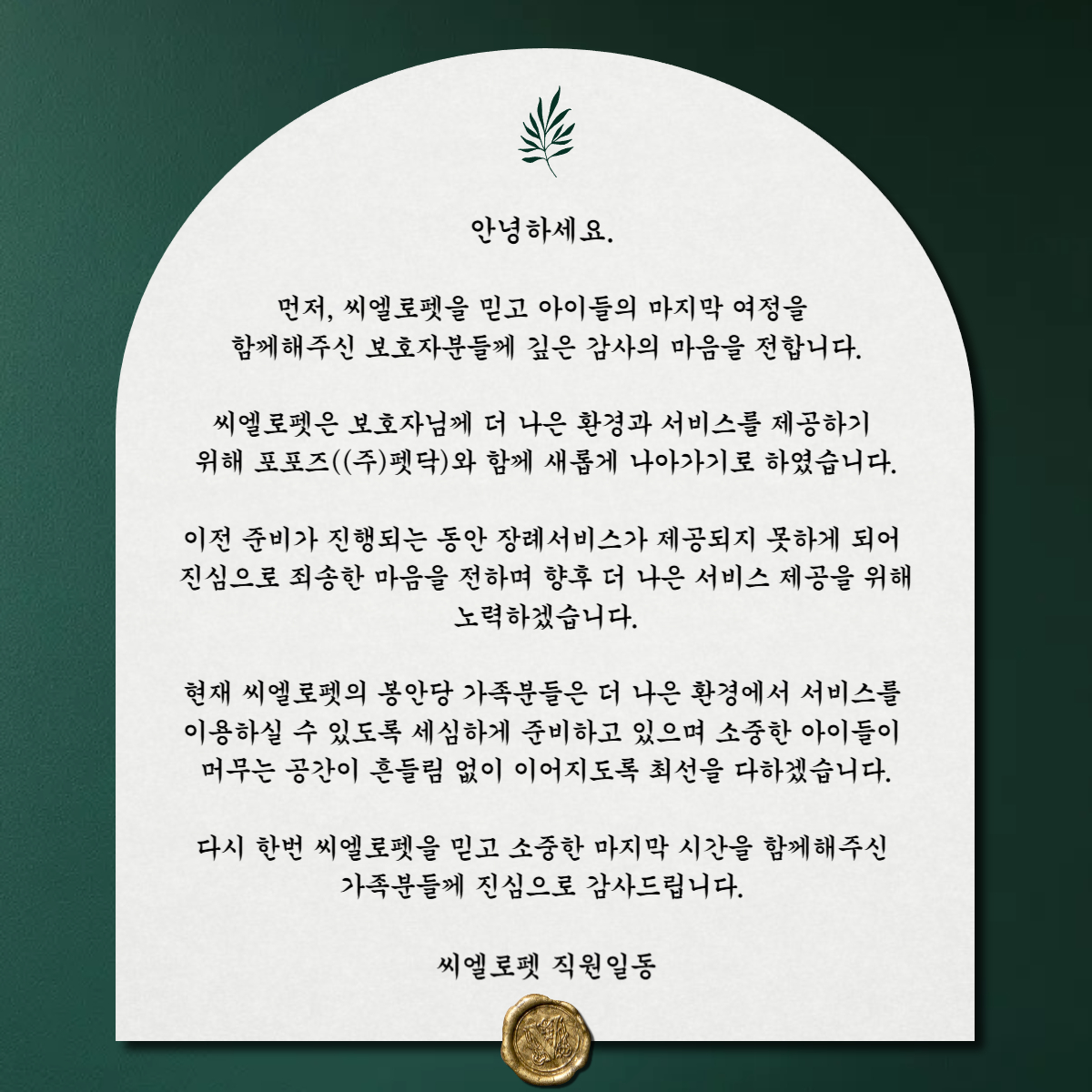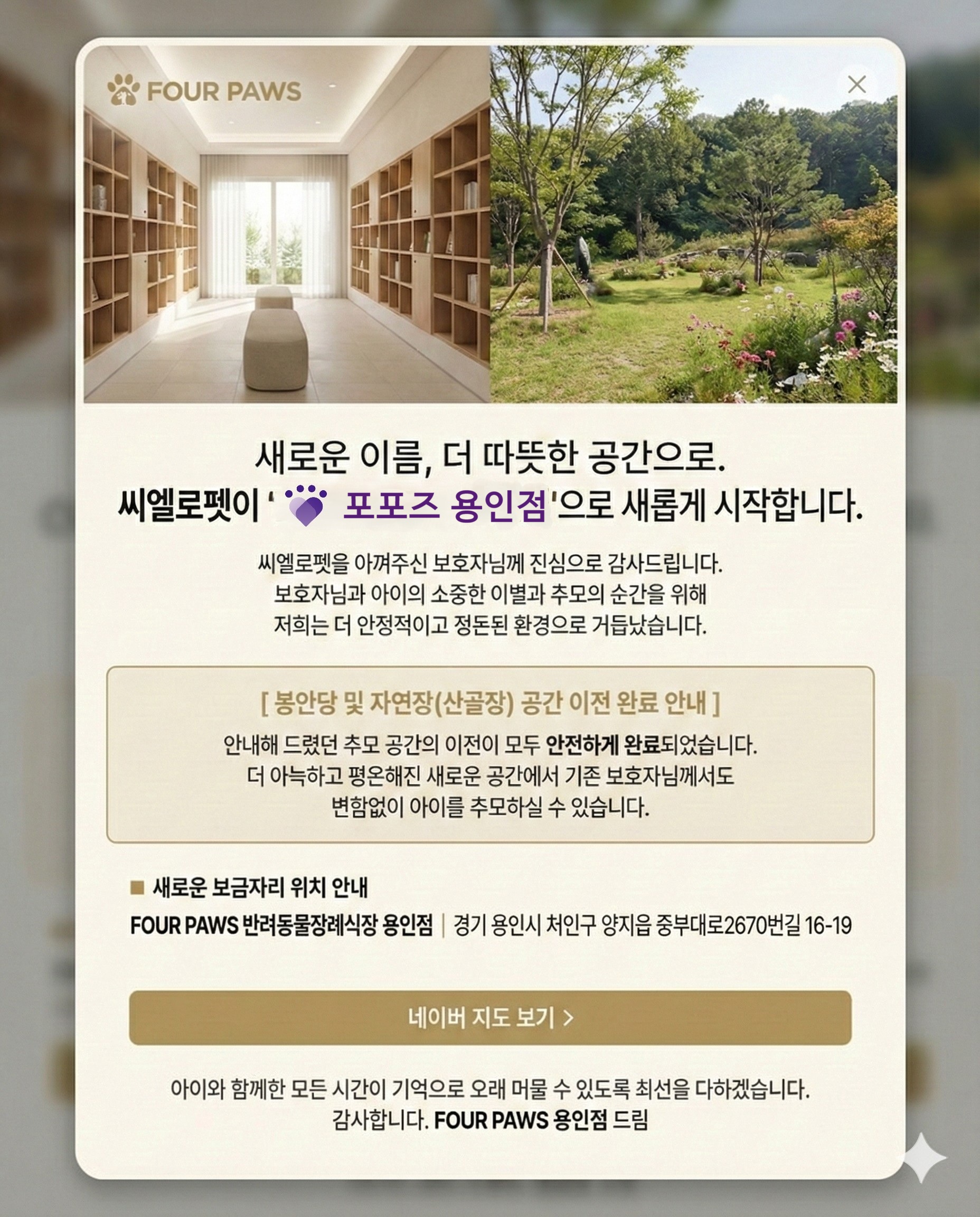 까미 건강이 안 좋아져서 , 마음의 준비 해야 한다는 의사 선생님의 말씀을 듣고 리뷰 하나하나 보면서 반려동물 장례식장을 찾아 봤어요 .퇴근이 8 시 이후라 당일에 10 시 예약을 했음에도 불구하고 , 하나하나 안내 해 주시고 ,모든 순간에 진심으로 임해 주시는 모습 보고 까미 마지막 가는 길 좋은 마음으로 행복하게 편하게 보내 줄 수 있어서 너무 좋았고 감사했어요주변 반려동물 키우는 분들에게 추천 할 정도로 너무 감사했습니다 .. 마지막에 사진도 다 챙겨 주셔서 너무 감사했어요좋은 일 하시는 선생님들 , 적게 일하고 많이 버세요 ..... 정말 감사했습니다 까미 마지막까지 너무 행복 했을 것 같아용 ㅎㅡㅎ️